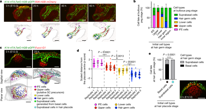 簡単にいうと同心円上にいくつか毛包のもととなる細胞がありそれが下に伸びて毛包が形成されるという仕組みを顕微鏡によるライブイメージングで見つけたということですね。海賊が持っている望遠鏡のように毛包が伸びるということですね。