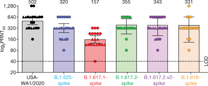 そしてその結果ですが、概ね変異株に対する中和は野生型と変わらなかったが、B.1.617.1の変異株に対する中和だけが低かったという結果になっています。これがまさにインド株と言われているものですね。